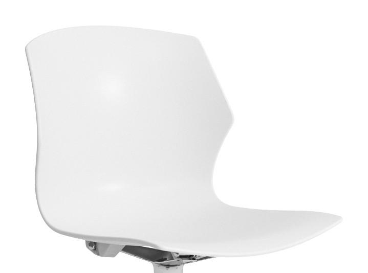 Une collection au grand confort, réalisée en mousse de polyuréthane injectée (noir, blanc, argent, bleu ou rouge), et associée à différents types de structure : - Version chaise 4 pieds, - Version tabouret réglable, - Version chaise de bureau à roulettes. - Son dossier en deux parties f