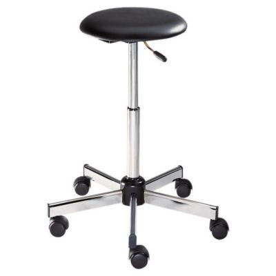 Tabouret professionnel d'atelier en vinyle sur roulettes modèle bas avec - > Assise Ø 370 mm, coloris noir. - > Base à 5 appuis Ø 600 mm avec roulettes. Réglage en hauteur du tabouret de 500 à 700 mm. - Caractéristiques - > Poids : 5.5 kg. - > Conforme à la norme NF EN 1335 - 3 -