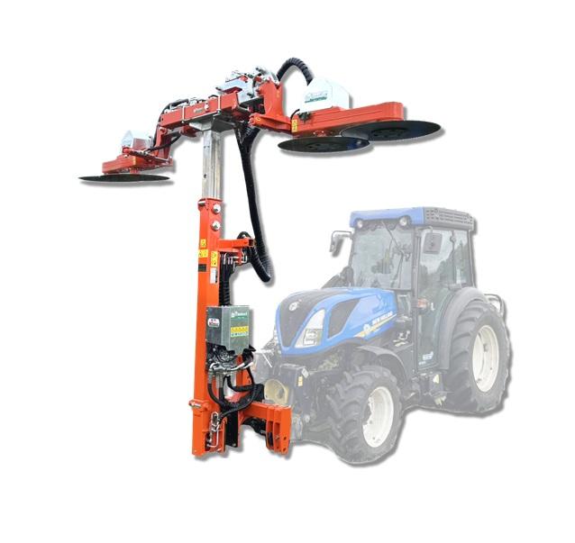 Lamier arboricole à disques approprié pour vergers. Conseillé pour travaux dans différentes formes de cultures, à la fois traditionelles avec une implantation cône ou monocône ou intensive dédiée à la récolte mécanisée. Le chassis est doué de 4 mouvements hydraulique controlés par un