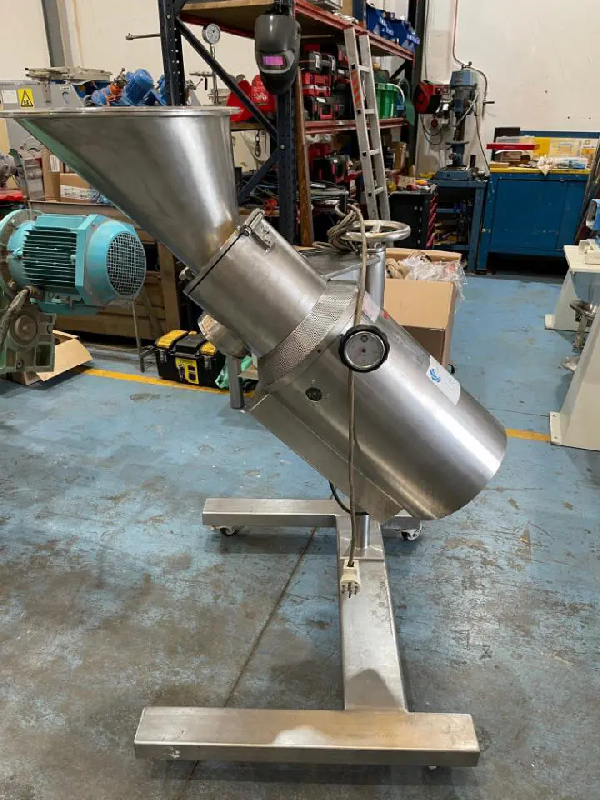Tamiseuse centrifuge en acier inoxydable de la marque GUERIN, équipée d'une vanne rotative de vidange DMN WESTINGHOUSE. - Dimensions du tamis : - Longueur : 550 mm - Diamètre : 190 mm - Maille : 5 mm - Matériel - Acier inoxydable - Dimensions - TAMIS - 5 - Informations pour le transpor