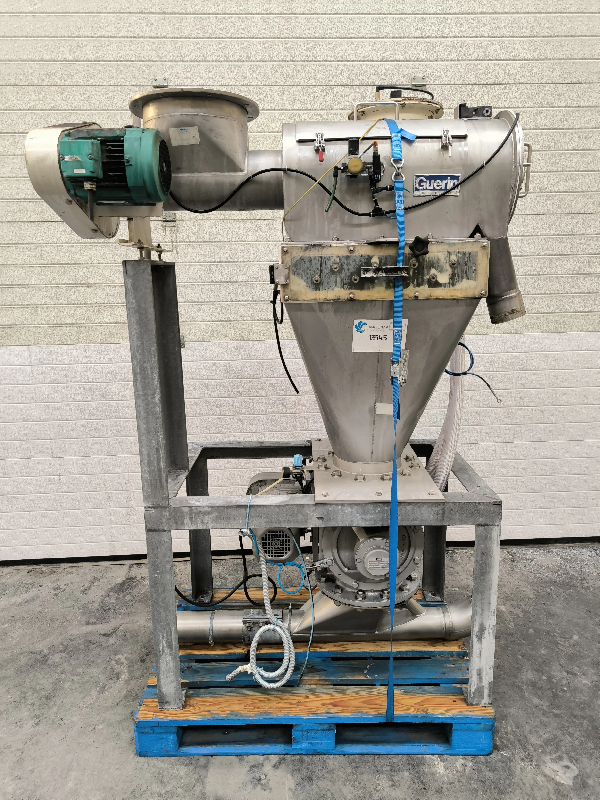 Tamiseuse centrifuge de la marque GUERIN, modèle TR - 102, avec filtre à manches et vanne rotative DMN WESTINGHOUSE. Année 2005. - Dimensions du filtre à manches : - Diamètre intérieur : 62 mm - Hauteur : 490 mm - Dimensions du tamis : - Longueur : 550 mm - Diamètre : 190 mm - Maille :