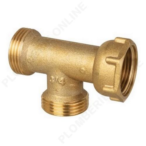 Té en laiton avec écrou central 3/4 MM, idéal pour les montages de plomberie nécessitant un raccord fiable et démontable. Excellente résistance et longévité.