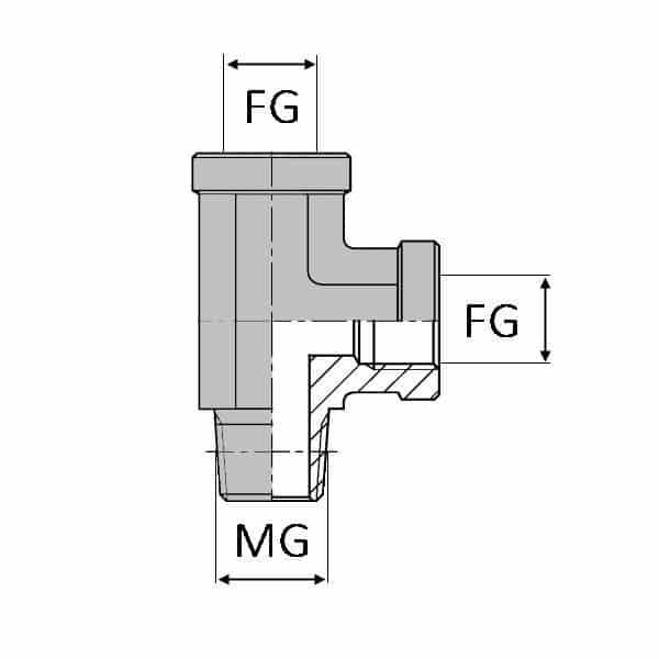 Té orientable renversé femelle gaz cylindrique x femelle gaz cylindrique x mâle conique - 3/4' , 26.44 , 3/4' , 24.12