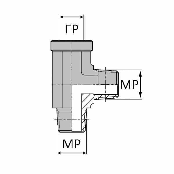 Té orientable renversé mâle NPT x femelle NPT x femelle NPT - 3/8' , 14.41 , 3/8' , 17.05