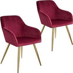 Tectake 2 Chaises MARILYN Effet Velours Style Scandinave - bordeaux/or -403998 - rouge plastique 403998