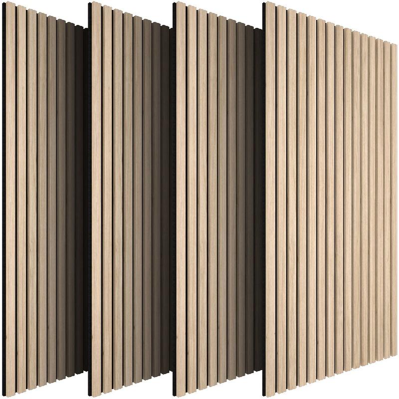 - MDF 13 mm plaqué bois massif 6/10 ème dossé, deux faces (autres épaisseurs sur demande) - 3 hauteurs disponibles: 1800 mm, 1600 mm, 1300 mm - 4 largeurs disponibles: 1800 mm, 1600 mm, 1200 mm, 800 mm - Voile de verre acoustique noir collé à chaud - Espacement de rainurages: 10, 15 ou 20