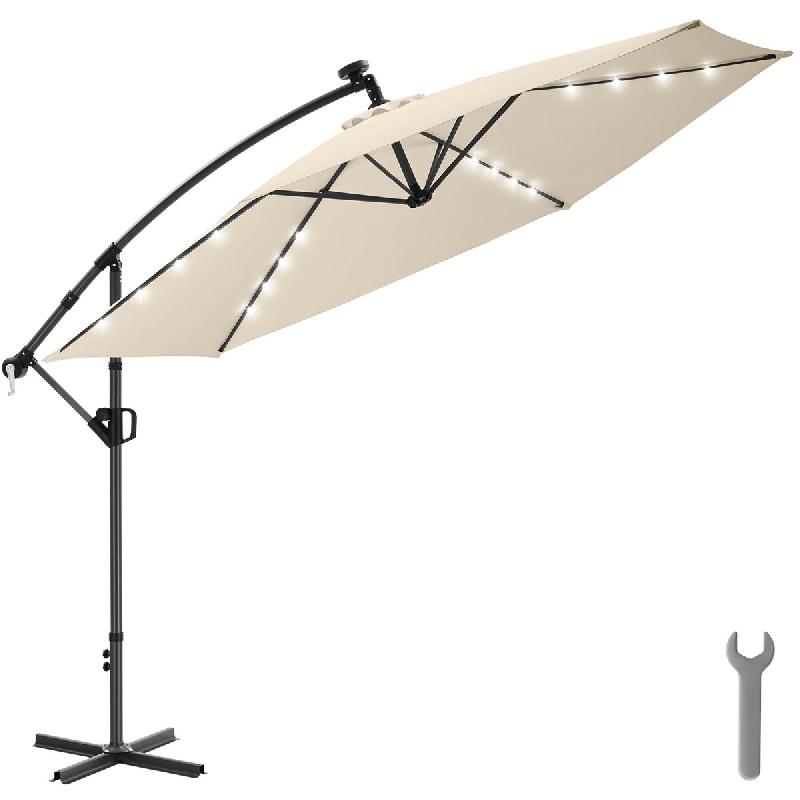 TecTake GmbH tectake Parasol à pied déporté Artemis, pivotant à 360°, LED solaire, 3,5 x 3,5 m Beige - beige acier 406555