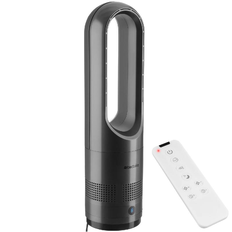 L'indispensable de l'été Découvrez le puissant ventilateur colonne Polar de tectake et gardez votre fraîcheur même lors des journées les plus chaudes. Grâce à son design sans pales apparent, il offre non seulement une esthétique moderne et épurée, mais aussi une sécurité maximale : parfait pour les foyers avec de jeunes enfants ou des animaux domestiques. Utilisation intuitive Le ventilateur est équipé d'un écran tactile ergonomique avec affichage LED, pour une prise en main particulièrement simple. Choisissez parmi 8 vitesses ainsi que les modes boost et nuit pour un rafraîchissement sur mesure selon vos besoins - doux et silencieux pour les nuits paisibles ou puissance maximale pour un coup de fraîcheur instantané. Atout supplémentaire : toutes les fonctions se pilotent à distance grâce à la télécommande incluse. Performances optimales La fonction d'oscillation intelligente garantit une diffusion homogène de l'air dans toute la pièce, permettant de rafraîchir efficacement même les grands espaces de vie. Le confort climatique est complété par le minuteur intégré, qui assure un arrêt automatique programmable. Le fonctionnement s'adapte ainsi parfaitement à votre rythme quotidien. Optez pour le ventilateur colonne Polar de tectake et offrez à votre intérieur une bouffée de fraîcheur moderne ! Points forts Ventilateur colonne sans rotor avec fonctionnement silencieux 8 niveaux de vitesse ainsi que mode maximal et mode nuit Oscillation de 80° et fonction minuterie réglables Panneau tactile LED intuitif et télécommande pratique Stabilité optimale grâce aux pieds en caoutchouc antidérapants Construction compacte, maniable et légère Facile à nettoyer Couleur: gris anthracite Caractéristiques Techniques Dimensions totales (⌀xH) : env. 14,5 x 55,5 cm Anneau de flux d'air (LxH) : env. 10 x 28,5 cm Plage de rotation : env. 80° Minuterie : 1 à 9 heures Niveau sonore : 35 - 55 dB Puissance : 20 W Longueur du câble : env. 153 cm Poids : env. 1,7 kg Matériaux : ABS, polyoxyméthylène, carte de circuit imprimé, acier, cuivre Contenu de la livraison Ventilateur colonne Télécommande Mode d'emploi