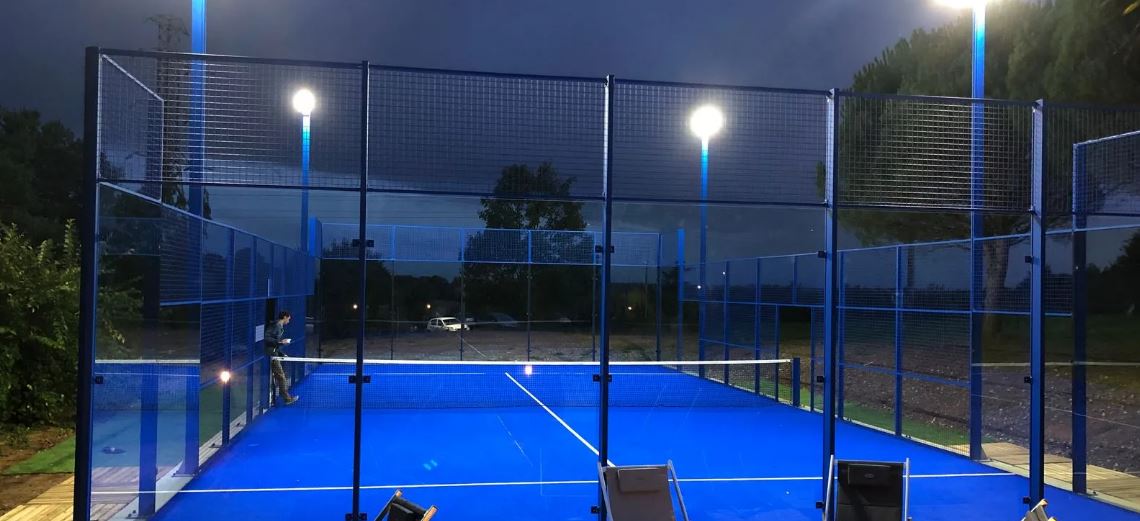 - Configuration : un terrain de padel extérieur ou terrain de padel intérieur nécessitant un plafond haut, un éclairage sportif ou des projecteurs LED.