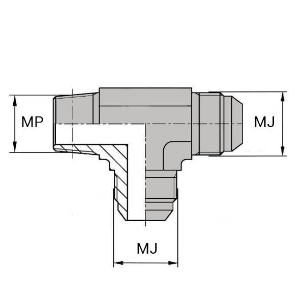 Caractéristiques : - DESIGNATION : CFJ7/16 / MNPT1/8 90 - Ø MJ (inch) : 7/16" - Ø MJ (mm) : 11.11 - Ø MP (inch) : 1/8" - Ø MP (mm) : 10.24