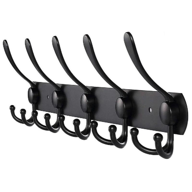 TOJ Living Porte-manteau mural – 15 crochets – 45 cm – acier inoxydable – noir mat – patères - noir 8720211260407
