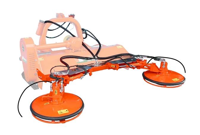 Tondeuses hydrauliques double interceps avec palpeurs pour broyeur, destiné à la coupe de l'herbe sous le rang dans les vignes et vergers.