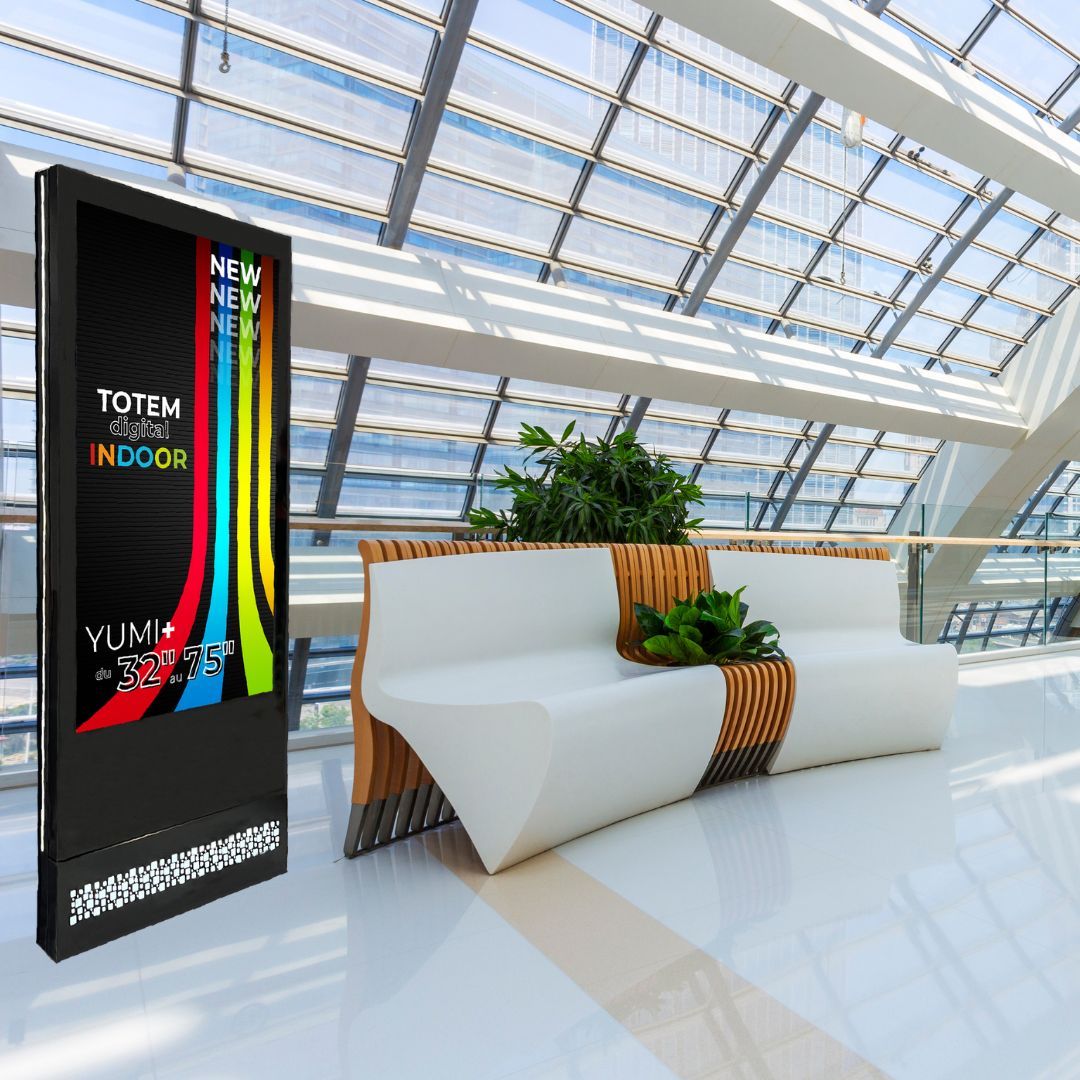 Display Media enrichit sa gamme avec le YUMI+, un totem d’affichage dynamique premium alliant design élégant et performances optimales. Avec sa façade en verre intégrale, il s’intègre parfaitement dans tous vos espaces intérieurs.