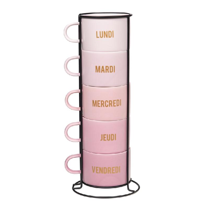 Tour de 5 mugs Week 8,8 cm - Rose Rond Porcelaine Table Passion 12x12 cm - rose porcelaine 3106232961038