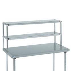 Etagère supérieure pour table inox, plateaux réglables, 2 niveaux, dimensions 1600 x 300 mm hauteur 600 mm - construction inox - montants en tube cylindrique diamètre 32 mm - plateaux épaisseur 12/10ème de mm - fixation sur table par 2 cornières - livraison à plat sous carton