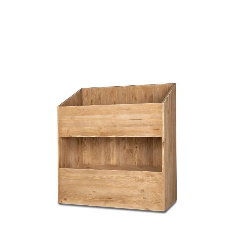 Caractéristiques : - Bois : Sapin massif (épaisseur planches 18mm, normes anti - feu). - Dimensions : Largeur 1200mm x Profondeur 500mm x Hauteur 1260mm. - Niveaux : 1 Niveau fixe et 1 niveau orientable (plateau du haut). - Finition : Rendu « Bois vieilli ». - Protection : Huile naturelle d
