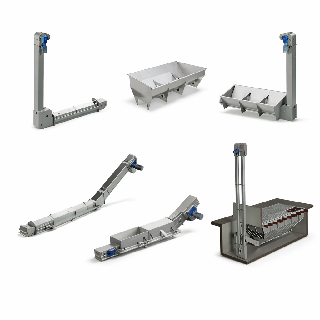 Les transporteurs à chaîne sont utilisés pour déplacer efficacement les céréales sur de longues distances, tout en garantissant une manipulation délicate des grains. Ces convoyeurs sont conçus pour une utilisation robuste, résistant à l'usure et aux conditions de travail intensives. Ils sont particulièrement adaptés pour les environnements industriels nécessitant un transport continu de grandes quantités de céréales.