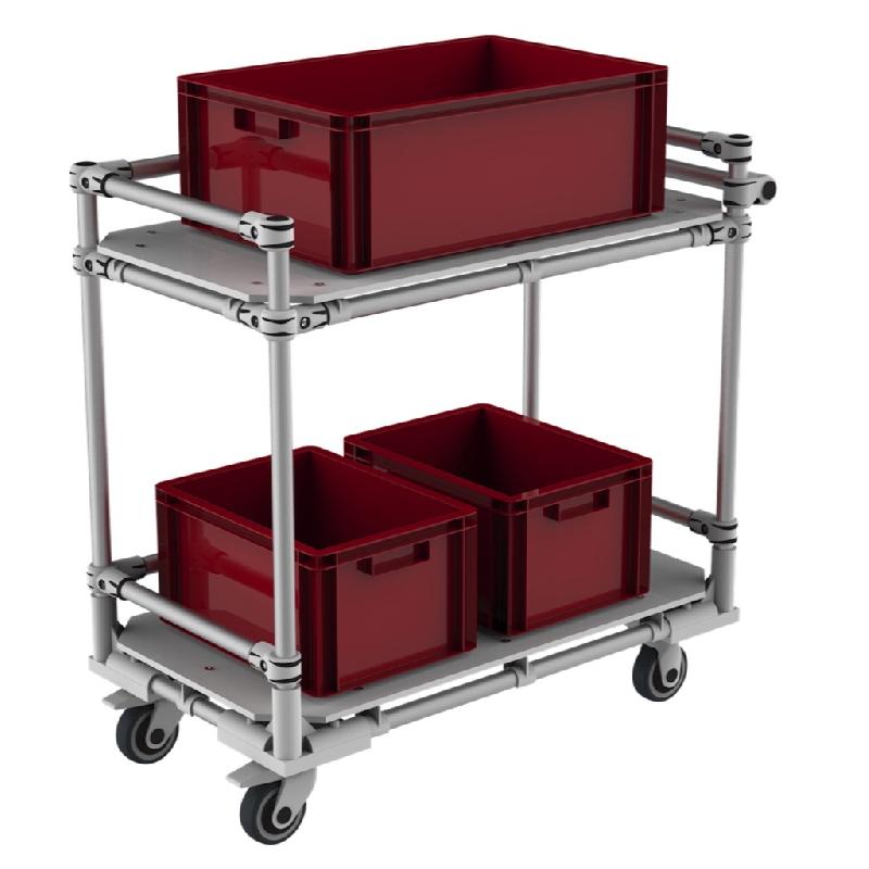Chariot midsize multi-usage 2 niveaux ajustables en hauteur et inclinaison. 3 rebords anti-chute. Poignée ergonomique réglable en hauteur. Structure aluminium légère et maniable . 2 roulettes pivotantes et 2 roulettes pivotantes avec frein montées sur platine.