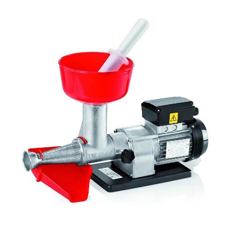 Conçu pour un usage domestique intensif, le presseur électrique à tomates Med Junior de Tre Spade est équipé d'un moteur monophasé asynchrone de 220 V, garantissant efficacité et silence. La structure comprend un corps en fonte plaqué étain, une hélice en résine de qualité alimentaire, u