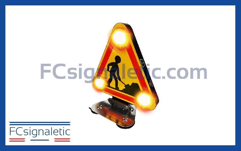 Triangle Triflash Travaux AK5 autonome magnétique 500 mm 2 faces classe 2 LEDWORK LWK0560