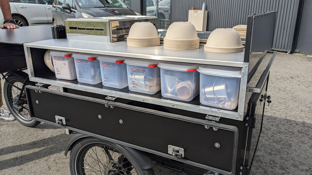 Triporteur street-food pour une restauration simple et qualitative lors d'événements, animations de quartier