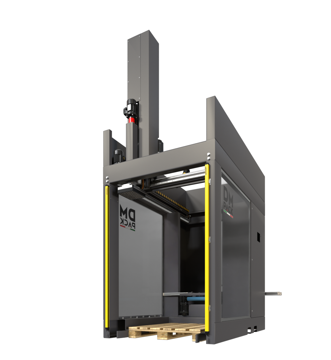 Le palettiseur robotisé linéaire automatisé TRON 4 cotés ouverts fait partie de notre gamme de palettiseurs robotisés linéaires, conçus pour répondre aux exigences des clients en termes de vitesse, de dimensions et de configuration finale. - Construit sur une structure porteuse robust