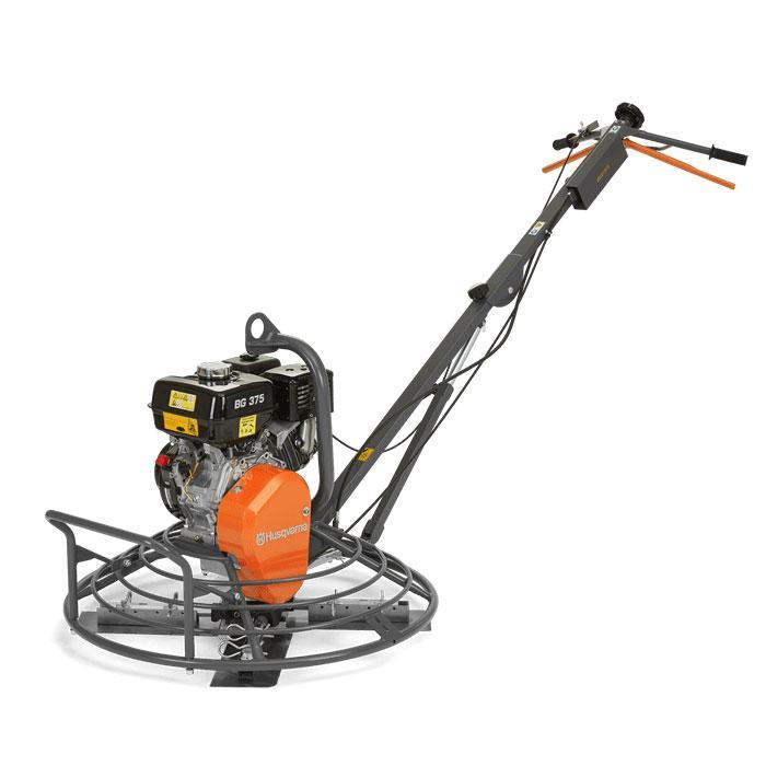 Truelle à béton grande capacité BG 375. La BG 375 est une truelle à béton puissante à haute capacité conçue pour relever de gros défis, et elle est propulsée par un moteur Honda fiable. Elle dispose de l'embrayage QUICKSTOP pour plus de sécurité. La BG 375 est équipée d'une poignée pl