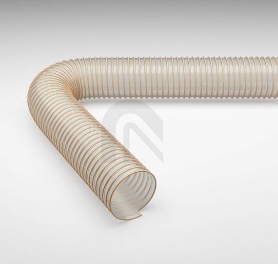 Tuyau PU d'aspiration et de transfert, très résistant à l'abrasion et à la dépression, avec renfort sous la spirale, antistatique, résistant aux agressions microbiennes, difficilement inflammable selon DIN 4102 B1