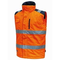 Ce gilet de travail haute - visibilité rembourré est doté de bandes réfléchissantes sur le buste et les épaules.Il se compose également de deux grandes poches frontales sur le bas fermées par une fermeture éclair, d'une poche poitrine sur le côté gauche avec fermeture à glissière hydrof