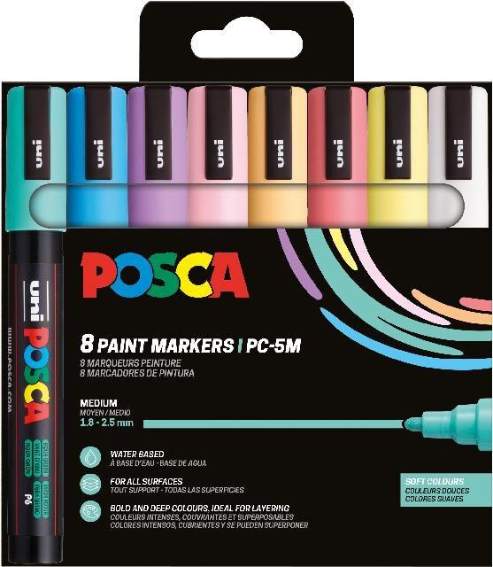 Uni-ball POSCA - Mitsubishi Pencil - Pochette 8 Marqueurs PC5M - Pointe Moyenne - Peinture à Base d'Eau - Tout Support - Couleurs Douces - 182552