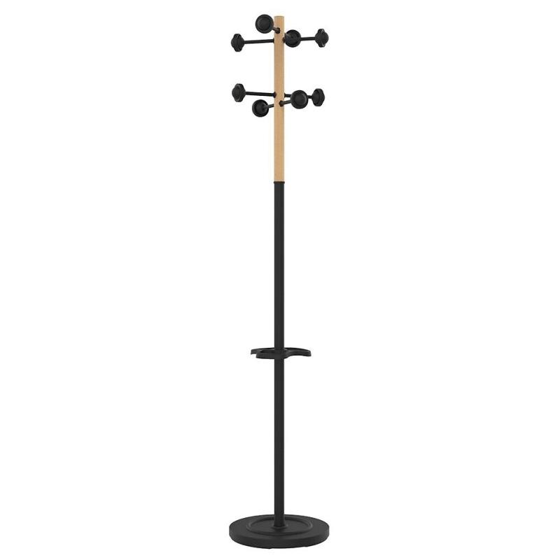 Unilux 100340701 Accueil Portemanteau sur pied à Tête Tournante avec 8 Patères Porte-Parapluies et Egouttoir 175 x 34 cm Noir/Bois hêtre - 3595560