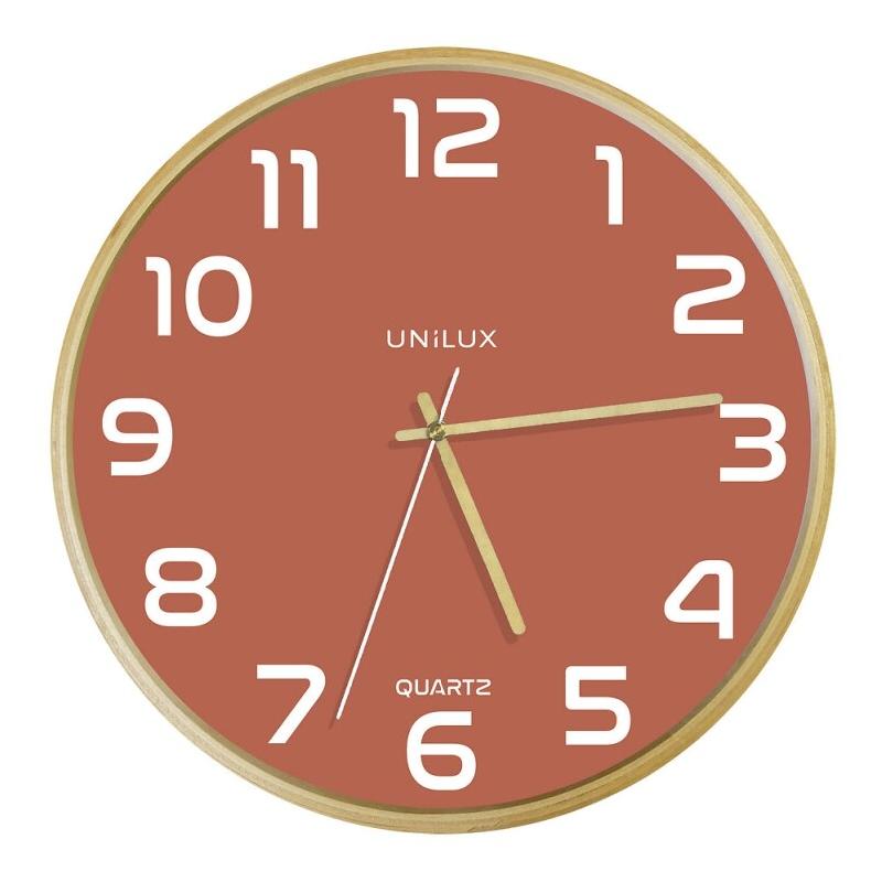 UNILUX Pendule murale à quartz Baltic, sur pile, diam. 31,5 cm, coloris brique/hêtre - 3595560034789