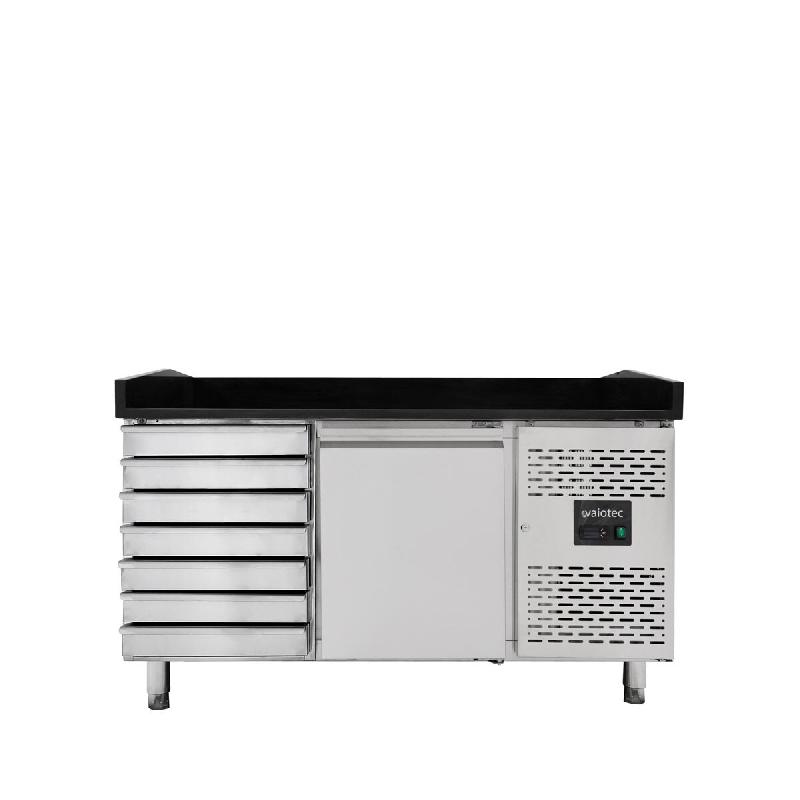 Vaiotec Comptoir réfrigéré à pizza EASYLINE / 1 porte et 7 tiroirs « noir », 1510 x 800 mm - inox 10072