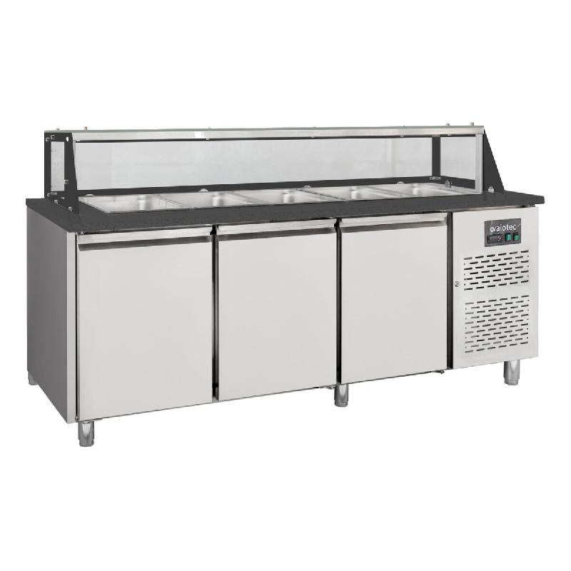 Vaiotec Table de préparation EASYLINE / 3 compartiments avec portes, structure vitrée, pour 5 bacs GN 1/1 « noir », 2000 x 800 mm - inox 12231