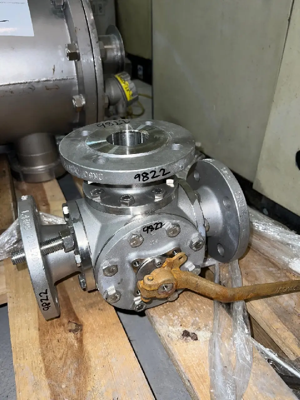 Robinet à boisseau sphérique manuel en acier inoxydable, à 4 voies, d'occasion.