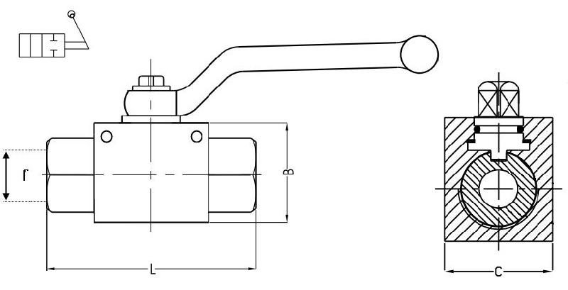 Caractéristiques : - DESIGNATION : VBS HP 3V 1/4 EZ PERCEE PASSAGE EN T - ø f (pouce) : 1/4' - ø f (mm) : 11.44 - L (mm) : 72.6 - B (mm) : 35.0 - C (mm) : 26.0 - Pression maxi (bar) : 500.0 - Option : Perçage réalisable dans notre atelier