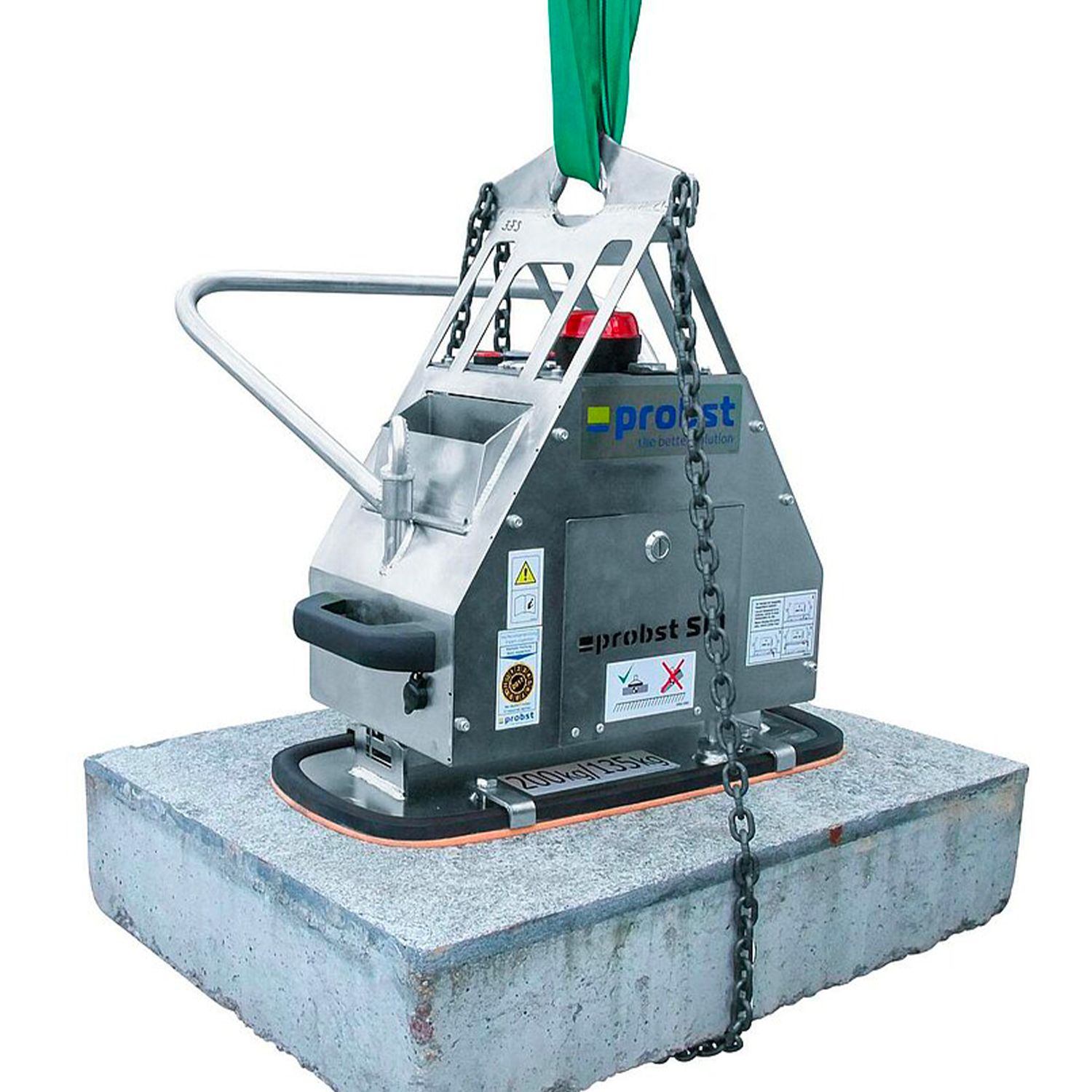 Le SM-600 est un appareil de préhension par ventouse maniable, puissant, indépendant d'un réseau électrique, pour la pose de dalles en pierres non poreuses, d'éléments en béton, de marches, de tuyaux en grès, etc. en relation avec un engin de levage.