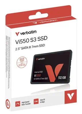 Les disques à circuits intégrés Verbatim 2,5 pouces SATA III 7 mm peuvent revigorer les performances de votre système. Dotés de la toute nouvelle technologue 3D NAND, ils constituent le moyen parfait pour la mise à niveau à partir d€un disque dur ou d€un disque SSD moins récent. Le disque Vi550 est doté d'un contrôleur supérieur offrant une meilleure fiabilité, des capacités plus élevées et des débits en lecture/écriture plus rapides.