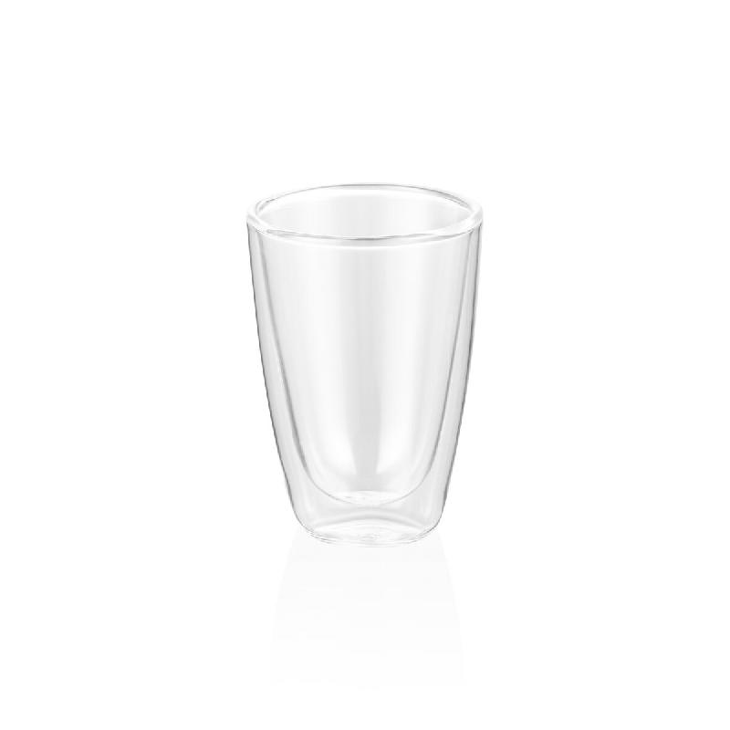 Tasses double paroi S2 Arô (2 pièces), verres 38 cl en borosilicate transparent. Design épuré et anse ergonomique, offrant isolation thermique pour maintenir boissons chaudes ou froides et éviter la condensation extérieure. Hauteur 9 cm, idéales pour enrichir une gamme vaisselle haut de gamme