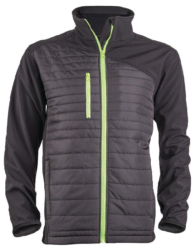 veste softshell en polyester / elasthanne.col droit.renforts sur les epaules, les cotes et bas de manches pour une meilleure resistance a l'abrasion.fermeture a glissiere.poignets elastiques.2 poches zippees avec double curseur : une ouverture d'aeration pour le confort et une grande poche fonctionn