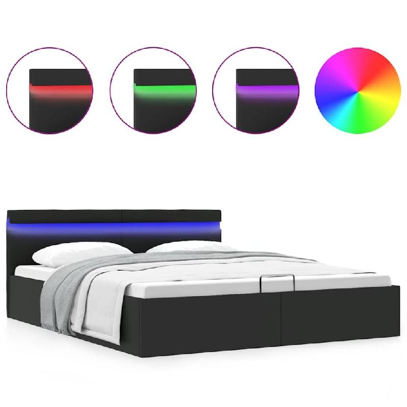 VidaXL Cadre de lit à rangement hydraulique sans matelas avec LED noir Modèle Lermonyx - 285544