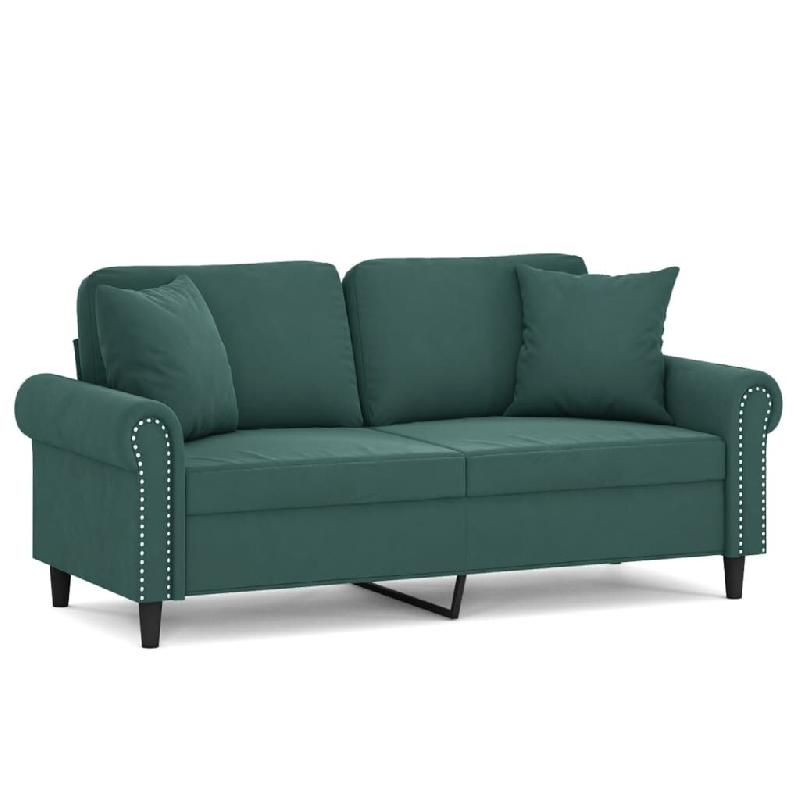 VidaXL Canapé 2 places avec oreillers vert foncé 140 cm velours Modèle Vega Office Ligne - 3200947