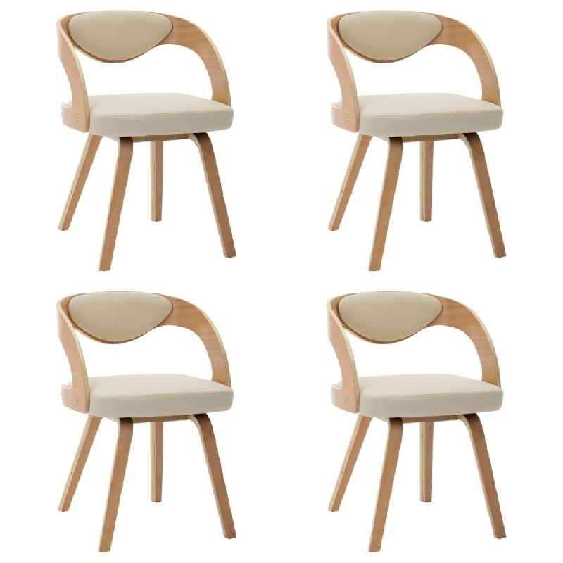 VidaXL Chaises à manger lot de 4 crème bois courbé et similicuir Modèle Évasion Pro - 278844