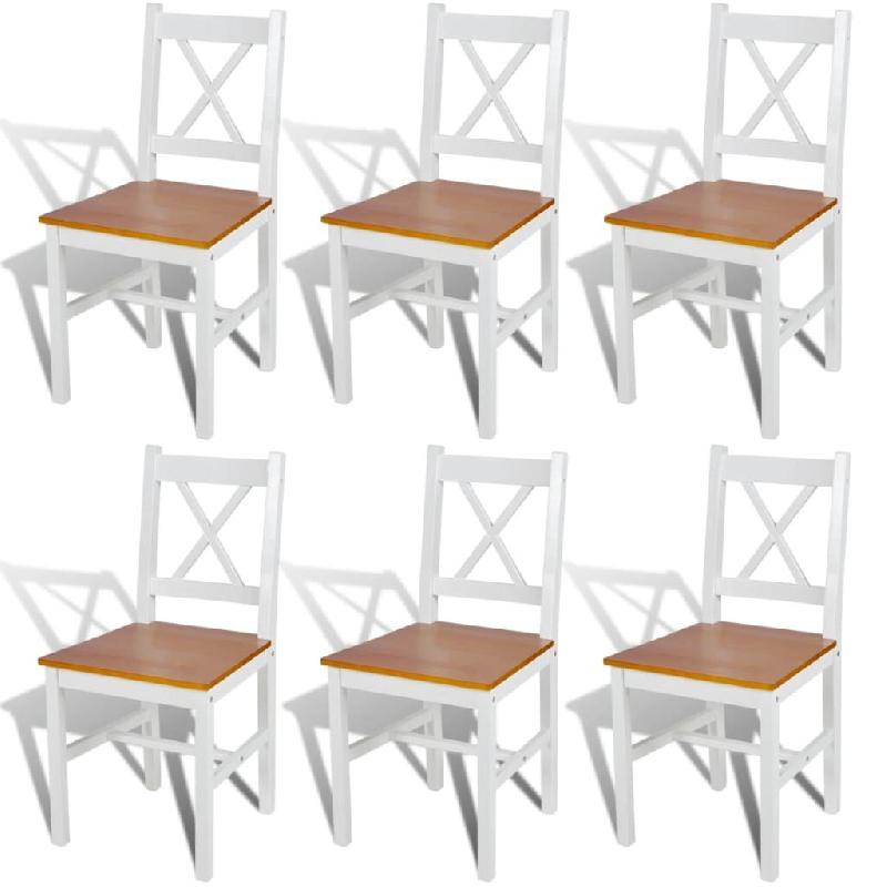 VidaXL Chaises à manger lot de 6 blanc pinède Modèle Nova Select - marron Bois massif 271497