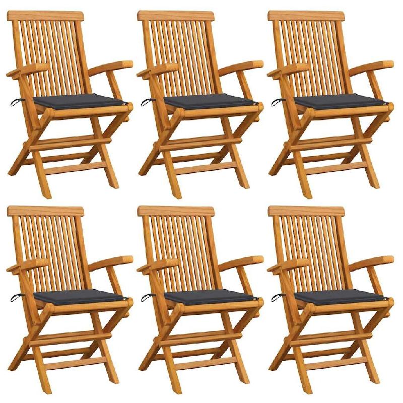 VidaXL Chaises De Jardin Avec Coussins Anthracite Lot De 6 Bois Teck - gris 3062541