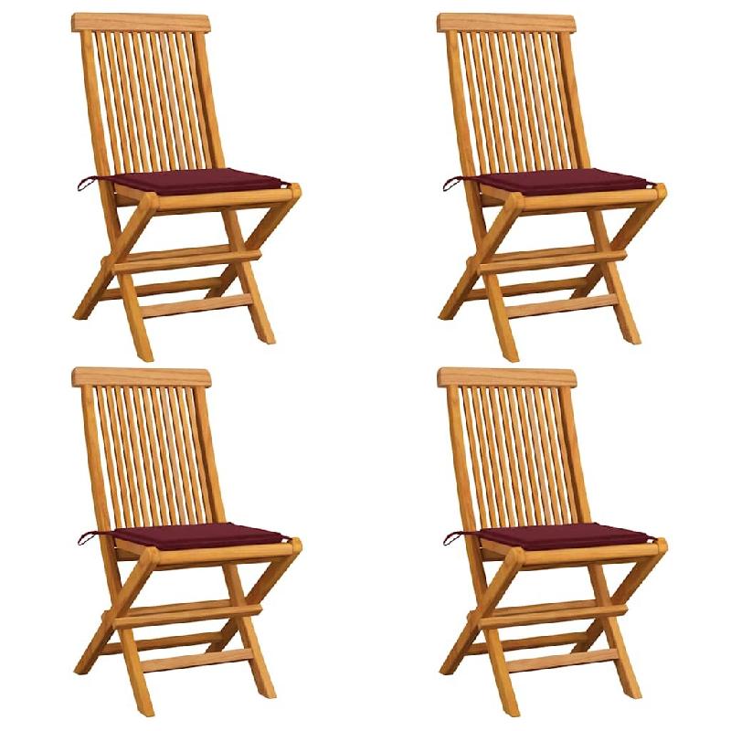 VidaXL Chaises De Jardin Avec Coussins Rouge Bordeaux Lot De 4 Teck - rouge 3062577