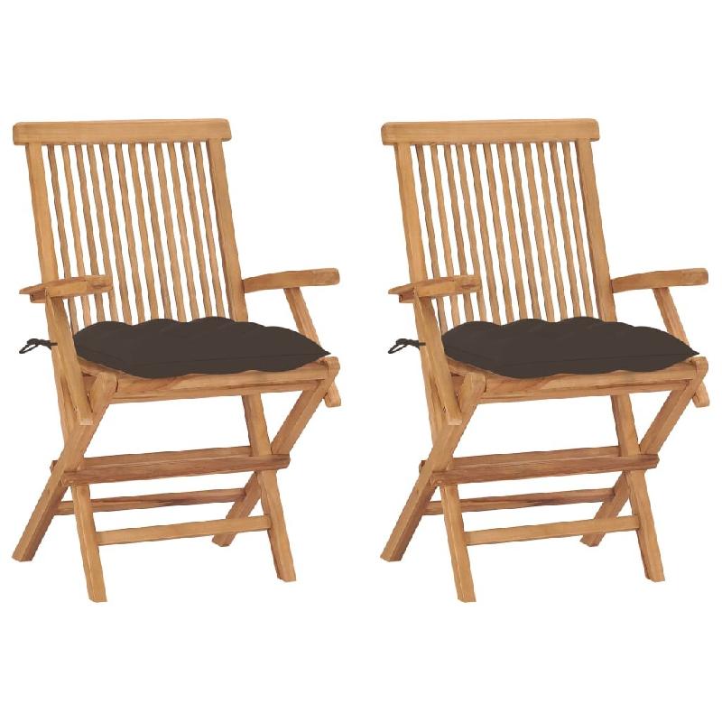 VidaXL Chaises De Jardin Avec Coussins Taupe Lot De 2 Bois Teck Massif - gris 3062510
