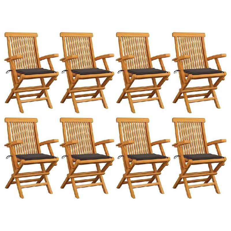 VidaXL Chaises De Jardin Avec Coussins Taupe Lot De 8 Bois Teck Massif - gris 3072897