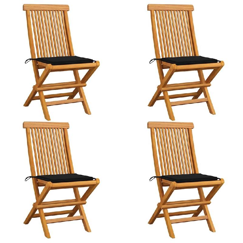VidaXL Chaises De Jardin Et Coussins Noir Lot De 4 Bois De Teck Massif - noir 3062575