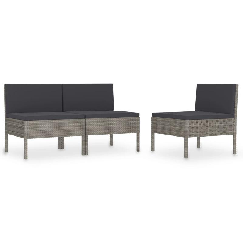 VidaXL Chaises De Jardin Lot De 3 Avec Coussins Résine Tressée Gris - gris 310192